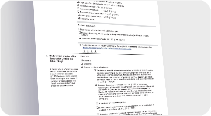 Case 22-11066 Doc 1 Filed 11/11/22 Page 2 of 23 AlamedaResearchLLC Debtor _______________________________________________________ Case number (if known)_____________________________________ Name ✔ 6. Type of debtor ‰ Corporation (including Limited Liability Company (LLC) and Limited Liability Partnership (LLP)) ‰ Partnership (excluding LLP) ‰ Other. Specify: __________________________________________________________________ 7. Describe debtor’s business A. Check one: ‰ Health Care Business (as defined in 11 U.S.C. § 101(27A)) ‰ Single Asset Real Estate (as defined in 11 U.S.C. § 101(51B)) ‰ Railroad (as defined in 11 U.S.C. § 101(44)) ‰ Stockbroker (as defined in 11 U.S.C. § 101(53A)) ‰ Commodity Broker (as defined in 11 U.S.C. § 101(6)) ‰ Clearing Bank (as defined in 11 U.S.C. § 781(3)) ✔ ‰ None of the above B. Check all that apply: ‰ Tax-exempt entity (as described in 26 U.S.C. § 501) ‰ Investment company, including hedge fund or pooled investment vehicle (as defined in 15 U.S.C. § 80a-3) ‰ Investment advisor (as defined in 15 U.S.C. § 80b-2(a)(11)) C. NAICS (North American Industry Classification System) 4-digit code that best describes debtor. See http://www.uscourts.gov/four-digit-national-association-naics-codes . 5239 ___ ___ ___ ___ 8. Under which chapter of the Check one: Bankruptcy Code is the ‰ Chapter 7 debtor filing? ‰ Chapter 9 ✔ A debtor who is a “small business ‰ Chapter 11. Check all that apply: debtor” must check the first sub- ‰The debtor is a small business debtor as defined in 11 U.S.C. § 101(51D), and its box. A debtor as defined in aggregate noncontingent liquidated debts (excluding debts owed to insiders or § 1182(1) who elects to proceed affiliates) are less than $3,024,725. If this sub-box is selected, attach the most under subchapter V of chapter 11 recent balance sheet, statement of operations, cash-flow statement, and federal (whether or not the debtor is a income tax return or if any of these documents do not exist, follow the procedure in “small business debtor”) must 11 U.S.C. § 1116(1)(B). check the second sub-box. ‰The debtor is a debtor as defined in 11 U.S.C. § 1182(1), its aggregate noncontingent liquidated debts (excluding debts owed to insiders or affiliates) are less than $7,500,000, and it chooses to proceed under Subchapter V of Chapter 11. If this sub-box is selected, attach the most recent balance sheet, statement of operations, cash-flow statement, and federal income tax return, or if any of these documents do not exist, follow the procedure in 11 U.S.C. § 1116(1)(B). ‰ A plan is being filed with this petition. ‰ Acceptances of the plan were solicited prepetition from one or more classes of creditors, in accordance with 11 U.S.C. § 1126(b). ‰ The debtor is required to file periodic reports (for example, 10K and 10Q) with the Securities and Exchange Commission according to § 13 or 15(d) of the Securities Exchange Act of 1934. File the Attachment to Voluntary Petition for Non-Individuals Filing for Bankruptcy under Chapter 11 (Official Form 201A) with this form. ‰ The debtor is a shell company as defined in the Securities Exchange Act of 1934 Rule 12b-2. ‰ Chapter 12 Official Form 201 Voluntary Petition for Non-Individuals Filing for Bankruptcy page 2