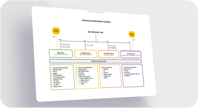 Case 22-11068-JTD Doc 24 Filed 11/17/22 Page 28 of 30 FOUR SILOS FOR RECOVERY PURPOSES Third Party Sam Bankman-Fried Third Party Investors Investors 22.25% 25.0% 52.99% 90.0% 67.0% 75.0% 16.93%: Gary Wang 10.0%: Gary Wang 23.0%: Gary Wang 7.83%: Nishad Singh 10.0%: Nishad Singh WRS SILO ALAMEDA SILO VENTURES SILO DOTCOM SILO Independent Director: Mitchell Sonkin Independent Director: Matt Rosenberg Independent Director: Rishi Jain Independent Directors: Judge Joseph Farnan and Matt Doheny Indicative Assets by Silo Cash and Cash Equivalents Cash and Cash Equivalents Venture Investments Cash and Cash Equivalents Cryptocurrency Cryptocurrency Anthropic Cryptocurrency FTX US Other Digital Assets K5 FTX.com LedgerX Treasuries Dave Inc. Real Estate FTX Derivatives Crypto ETFs Sequoia Capital Licensed Subsidiaries in Non-US FTX Capital Markets Venture Investments MystenLabs Jurisdictions Embed Clearing Genesis Digital Assets Others FTX Vault Modulo Capital FTX Gaming Pionic(Toss) FTX NFTs Others BlockFi Loans