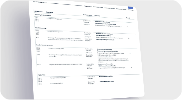 63 2021 ESG REPORT THE BIG PICTURE EMPOWERING WOMEN ENABLING OPPORTUNITY ENRICHING COMMUNITIES GOVERNANCE GRI Indicator Description Disclosure Source Section(s) Page(s) Human Rights Assessments 103-1 Management and approach Sustainability Assessment and Remediation 103-2 Webpages Policies and Approaches for Human Rights 103-3 ESG Report Empowering Women: Human Rights and Social Dialogue 19 Local Communities 103-1 Management and approach Sustainability Employees and Community Impact 103-2 Webpages P.A.C.E. and Empower@Work 103-3 ESG Report Enabling Opportunity: Employees and Community Impact 32 413-1 Percentage of operations with implemented local community Sustainability Measuring Our Progress: Community engagement, impact assessments and/or development programs Webpages Supplier Social Assessments 103-1 Management and approach Sustainability Assessment and Remediation 103-2 Webpages Policies and Approaches for Human Rights 103-3 ESG Report Empowering Women: Human Rights and Social Dialogue 19 414-1 Percentage of new suppliers that were screened using human Sustainability SASB Reference Table (CG-AA-430b.1) rights criteria Webpages Assessment and Remediation Gap Inc. screens 100 percent of new suppliers using human rights criteria. Learn more about our process on the above sustainability webpages. 414-2 Negative social impacts in the supply chain and actions taken Sustainability Assessment and Remediation Webpages COVC Issues at Assessed Factories ESG Report Empowering Women: Human Rights and Social Dialogue 19 Public Policy 103-1 Management and approach Sustainability Political Engagement Policy 103-2 Webpages 103-3 415-1 Political contributions Sustainability Political Engagement Policy Webpages