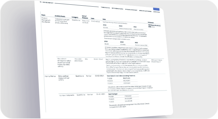 70 2021 ESG REPORT THE BIG PICTURE EMPOWERING WOMEN ENABLING OPPORTUNITY ENRICHING COMMUNITIES GOVERNANCE Unit of Topic Activity Metric Category Measure Code Data Reference Product Total greenhouse gas Quantitative Metric tons CG-EC-410a.1 Upstream transportation and distribution: CDP Climate Disclosure Packaging & (GHG) footprint of (t) CO -e 2021 (C6.5) 2 2019 2020 2021 Distribution product shipments 527,081 Available later in 2022 Available in 2023 Emissions calculated using primary metric ton/km information at a haul level from Gap internal systems, multiplied by The U.K. Department for Environment, Food & Rural Affairs product transportation emission factors. This represents emissions from our suppliers to our distribution centers. Downstream transportation and distribution: 2019 2020 2021 39,413 130,604 Available later in 2022 Emissions calculated using primary metric ton/km information at a haul level from Gap internal systems, multiplied by The U.K. Department for Environment, Food & Rural Affairs product transportation emission factors. In 2020, we also began to receive additional emissions information from UPS, which represents emissions from online shipments from distribution centers to customers or from Ship-From-Store methods. The UPS data is verified by SGS. Discussion of Discussion N/A CG-EC-410a.2 Gap Inc. is a signatory of the Arctic Corporate Shipping Pledge, created in ESG Report: Climate strategies to reduce and Analysis partnership with the Ocean Conservancy; the pledge is a commitment to never Stewardship p. 27 the environmental intentionally send ships through the Arctic’s fragile ecosystem. impact of product Gap Inc. is also a member of the Environmental Protection Agency’s (EPA) delivery SmartWay Transport Partnership, an initiative which empowers businesses to move goods in the cleanest, most energy-efficient way possible to protect public health and reduce emissions. Gap Inc. was recognized by the EPA with the 2020 SmartWay Freight Partner Excellence Award. Activity Metrics Entity-defined Quantitative Number CG-EC-000.A Total Global Online Orders (excluding Franchise) measure of user FY 2019 55,872,090 activity FY 2020 86,261,667 FY 2021 83,997,807 This data includes orders placed in the United States Specialty (web and app), U.S. Factory, Canada, Japan, European Union, and United Kingdom. It does not include franchises, cancellations, or returns. Number of shipments Quantitative Number CG-EC-000.C Total Packages FY 2019 77,625,502 FY 2020 145,512,653 FY 2021 124,463,015 This data includes packages transported in the United States, Canada, European Union, and Japan.