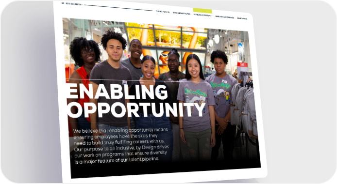 25 2021 ESG REPORT THE BIG PICTURE EMPOWERING WOMEN ENABLING OPPORTUNITY ENRICHING COMMUNITIES GOVERNANCE ENABLING OPPORTUNITY We believe that enabling opportunity means ensuring employees have the skills they need to build truly fulfilling careers with us. Our purpose to be Inclusive, by Design drives our work on programs that ensure diversity is a major feature of our talent pipeline.