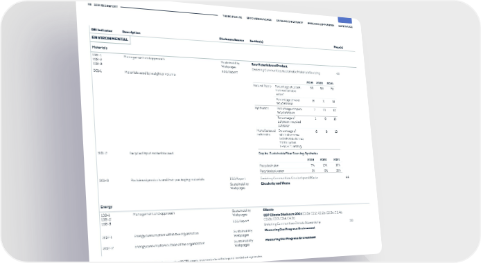 58 2021 ESG REPORT THE BIG PICTURE EMPOWERING WOMEN ENABLING OPPORTUNITY ENRICHING COMMUNITIES GOVERNANCE GRI Indicator Description Disclosure Source Section(s) Page(s) ENVIRONMENTAL Materials 103 -1 Management and approach Sustainability Raw Materials and Product 103-2 Webpages Enriching Communities: Sustainable Materials Sourcing 42 103-3 ESG Report 301-1 Materials used by weight or volume 2019 2020 2021 Natural fibers Percentage of cotton: 60 54 79 more sustainable cotton* Percentage of wool: 16 11 14 recycled wool Synthetics Percentage of nylon: 7 10 10 recycled nylon Percentage of 1 6 10 polyester: recycled polyester Manufactured Percentage of 8 9 13 cellulosics cellulosics: more sustainable viscose, modal, lyocell, TENCELâ„¢, lenzing 301-2 Recycled input materials used Gap Inc. Sustainable Fiber Sourcing: Synthetics 2019 2020 2021 Recycled nylon 7% 10% 10% Recycled polyester 1% 6% 10% 301-3 Reclaimed products and their packaging materials ESG Report Enriching Communities: Circularity and Waste 44 Sustainability Circularity and Waste Webpages Energy 103-1 Management and approach Sustainability Climate 103-2 Webpages CDP Climate Disclosure 2021 (C1.3a, C2.2, C2.2a, C2.3a, C2.4a, 103-3 ESG Report C3.2b, C3.3, C3.4, C4.3c) Enriching Communities: Climate Stewardship 39 302-1 Energy consumption within the organization Sustainability Measuring Our Progress: Environment Webpages 302-2 Energy consumption outside of the organization Sustainability Measuring Our Progress: Environment Webpages *Defined as: Better Cotton (formerly BCI), verified US-grown cotton (USCTP), organic, in-conversion (to verified organic), recycled and regenerative.
