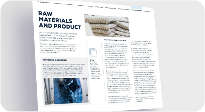 42 2021 ESG REPORT THE BIG PICTURE EMPOWERING WOMEN ENABLING OPPORTUNITY ENRICHING COMMUNITIES GOVERNANCE RAW MATERIALS AND PRODUCT We are committed to selecting fibers that have a lower carbon footprint, use less water, create less waste, and support PREFERRED FIBERS STRATEGY via the Open Apparel Registry on all efforts to protect biodiversity. Tier 1 suppliers, and we have more than Our preferred fibers strategy aims for 65 percent visibility into Tier 2. We focus on the materials that account for nearly all resilient supply chains that have a lower (approximately 97 percent) of our fiber consumption: impact on the environment and support In addition, our Product Development natural fibers (cotton, linen, etc.), synthetics (polyester, social well-being. We support this work teams depend on resources that allow nylon, elastane, etc.), and manufactured cellulosics by developing impact measurements them to make informed decisions (viscose, rayon, modal, etc.). that allow better decision-making about low-impact raw materials. These by our Product Development teams, resources include recorded training collaborating with our supply chain sessions, regularly updated fiber PROTECTING BIODIVERSITY 97% partners, and participating in industry consumption reports, an extensive initiatives. This strategy enables our internal Product Claims Toolkit, and a new of our fiber brands to make decisions to source more calculator that enables them to estimate A number of our environmental goals support our commitment consumption preferred fibers, especially cotton and how the selection of different fibers will to biodiversity. We also partner with nearly a dozen different is from recycled polyester. affect a product’s footprint. coalitions that are committed to protecting nature, including natural fibers, the World Resources Institute, WWF, and Textile Exchange. synthetics, and To identify preferred fibers, we use life Our brands are empowered to set their We are committed to supporting the development of SBTs manufactured on nature, and looking ahead, we plan to develop a Gap Inc. cellulosics - this cycle assessment data on indicators own raw materials goals and integrate biodiversity strategy that will help us meet them. is where we focus including global warming potential, sustainable solutions into product our preferred water use, and eutrophication, as well development, where more than 80 percent fibers strategy as evaluating biodiversity, potential for of impact decisions are made. This has circularity, chemistry, land-use change, resulted in new 2021 product lines with more and social conditions within production. sustainable product attributes, including To support this, we use industry tools such Gap Teen, Gap’s Generation Good, and as the Sustainable Apparel Coalition’s the Yeezy Gap Round Jacket; Athleta’s Higg Materials Sustainability Index (MSI) featherweight stretch with recycled poly; and Textile Exchange’s Preferred Fiber Old Navy’s sugarcane-derived EVA-foam and Material Matrix. flip flop; and Banana Republic’s recycled materials travel collection with Paravel. A critical component of our work is collaboration with our suppliers to develop Find more about our approach to sustainable fabric and manufacturing sustainable materials sourcing on processes. We report transparently our website.