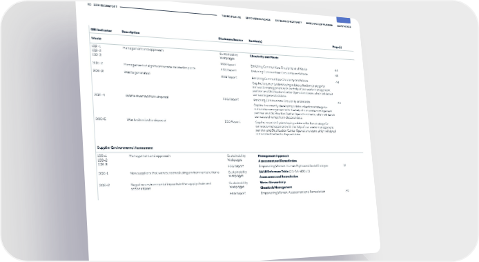 60 2021 ESG REPORT THE BIG PICTURE EMPOWERING WOMEN ENABLING OPPORTUNITY ENRICHING COMMUNITIES GOVERNANCE GRI Indicator Description Disclosure Source Section(s) Page(s) Waste 103 -1 Management and approach Sustainability Circularity and Waste 103-2 Webpages 103-3 ESG Report Enriching Communities: Circularity and Waste 44 306-2 Management of significant waste-related impacts ESG Report Enriching Communities: Circularity and Waste 44 306-3 Waste generated ESG Report Enriching Communities: Circularity and Waste 44 Gap Inc. is currently developing a data collection strategy for our waste management with the help of our waste management partner and Distribution Center Operations team, which will detail our waste generated data. 306-4 Waste diverted from disposal ESG Report Enriching Communities: Circularity and Waste 44 Gap Inc. is currently developing a data collection strategy for our waste management with the help of our waste management partner and Distribution Center Operations team, which will detail our waste diverted from disposal data. 306-5 Waste directed to disposal ESG Report Gap Inc. is currently developing a data collection strategy for our waste management with the help of our waste management partner and Distribution Center Operations team, which will detail our waste directed to disposal data. Supplier Environmental Assessment 103 -1 Management and approach Sustainability Management Approach 103-2 Webpages Assessment and Remediation 103-3 ESG Report Empowering Women: Human Rights and Social Dialogue 19 308-1 New suppliers that were screened using environmental criteria Sustainability SASB Reference Table (CG-AA-430a.2) Webpages Assessment and Remediation 308-2 Negative environmental impacts in the supply chain and Sustainability Water Stewardship actions taken Webpages Chemicals Management ESG Report Empowering Women: Assessment and Remediation 20