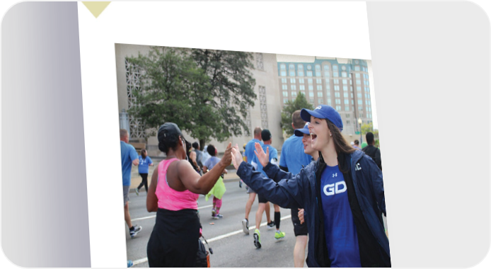 OUR CULTURE GD employees volunteer at the annual U.S. Army Ten-Miler. Sustainability Report 21