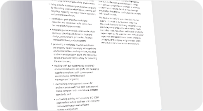 Environment 49 Our top objectives: y operating our facilities in compliance with all applicable laws and regulations in order to protect the health and safety of our employees, surrounding communities and the environment; y being a leader in improving environmental quality by minimizing waste and emissions, reusing and recycling, reducing the use of natural resources, and preventing pollution; y reaching our goal of carbon emissions reduction and to drive out solid waste from our manufacturing processes; y integrating environmental considerations into business planning and decisions, including design, procurement, production, facilities management and product support; y promoting a workplace in which employees are properly trained to comply with applicable environmental laws and regulations, meeting environmental program goals, and fostering a sense of personal responsibility for protecting the environment; y working with our customers to meet their environmental needs and goals, and managing suppliers consistent with our company’s environmental compliance and management programs; y maintaining a management system for environmental matters at each business unit that is compliant with international accepted standards; and y supporting existing and upcoming ISO 50001 registrations to help business units conserve resources through more efficient energy management. Collaboration Each of our businesses has professional Environmental, Health and Safety (EHS) programs to ensure our facilities operate safely and comply with company programs and practices to minimize environmental impacts. Each business develops annual objectives to drive continuous improvement in EHS performance. We have an active EHS committee that includes experts from each of our business units. This group is dedicated to monitoring and continuously improving compliance with environmental, health and safety rules, regulations and laws as directed by corporate policy. The committee also works together to promote best practices and shared strategies throughout the company and promotes a safety- conscious and environmentally aware culture.