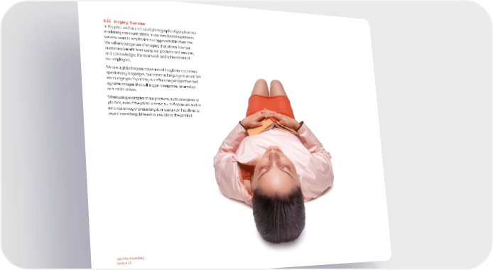 6.02 Imagery: Overview In the past, we have not used photographs of people in our marketing communications. In our new brand expression, we now want to emphasize our approachable character. We will encourage use of imagery that shows how our customers benefit from using our products and services, and acknowledges the teamwork and achievement of our employees. We are a global organization and although our customers speak many languages, our common language is visual. We encourage you to portray our offer using imaginative and dynamic images that will trigger a response, an emotion or a call to action. When using examples of our products, such as engines or plastics, even if the photo is static, try to find an unusual or innovative way of presenting it, or use text in headlines to reveal something different or new about the product. B2B Print Advertising Version 1.0