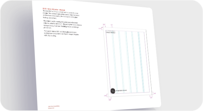 13.05 Grids: US Letter – Portrait The Grid (8.5" x 11") uses a 0.45" unit to create the outer margin. This outer margin will be used to align the brand architecture components, the Monogram and tagline lock-up, and all text. The column width is set by the gutter space between 0.45" 0.2" columns, which is set at 0.2". The grid system is six columns wide providing maximum flexibility for text and image 0.45" placement. GE Market Name Solution Platform Monogram Size is 0.85" and the tagline and brand architecture components are 18pt GE Inspira Regular with 19pt leading. imagination at work 0.45" 0.45" 0.45" 0.45" B2B Print Advertising Version 1.0