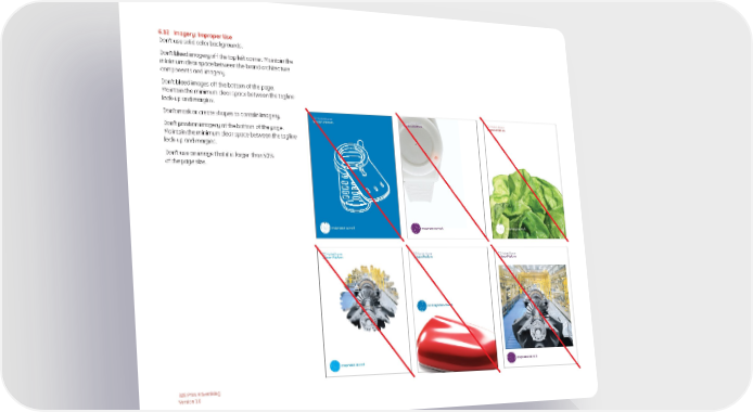 6.12 Imagery: Improper Use Don’t use solid color backgrounds. Don’t bleed imagery off the top left corner. Maintain the minimum clear space between the brand architecture components and imagery. Don’t bleed images off the bottom of the page. Maintain the minimum clear space between the tagline lock-up and margins. Don’t mask or create shapes to contain imagery. GE Market Name GE Market Name GE Market Name Solution Platform Solution Platform Solution Platform Don’t position imagery at the bottom of the page. Maintain the minimum clear space between the tagline lock-up and margins. Don’t use an image that it is larger than 50% of the page size. imagination at work imagination at work imagination at work GE Market Name GE Market Name GE Market Name Solution Platform Solution Platform Solution Platform GE imagination at work imagination at work imagination at work B2B Print Advertising Version 1.0