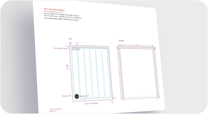 13.11 Grid: Tabloid Magazine Standard Tabloid size, generic Always position the Monogram and tagline lock-up in the lower left corner. The lock-up and brand architecture components always align to the left side of the grid. Grid Template 0.45" 0.22" 9.75" 9.25" 9" 0.45" 20/21pt GE Inspira Regular GE Market Name Solution Platform Bleed Trim Live me v i 11" BleedTriL 11.25"11.75" Monogram 0.95" imagination at work 0.45" 20/21pt GE Inspira Regular 0.45" B2B Print Advertising Version 1.0