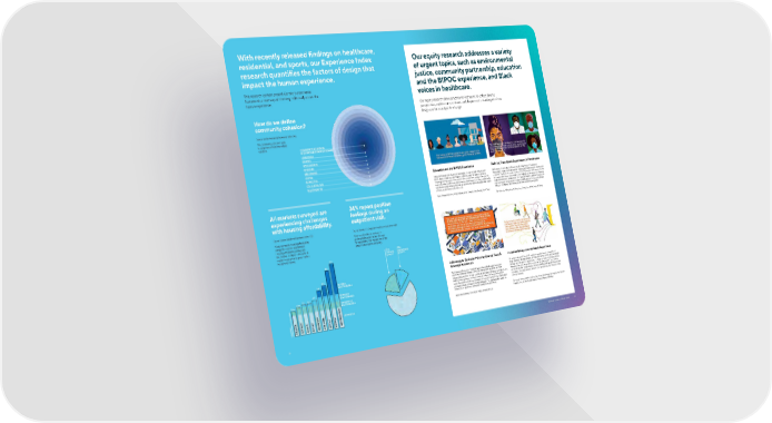 With recently released findings on healthcare, residential, and sports, our Experience Index Our equity research addresses a variety research quantifies the factors of design that of urgent topics, such as environmental impact the human experience. justice, community partnership, education This research centers around Gensler’s experience and the BIPOC experience, and Black framework, a new way of thinking holistically about the voices in healthcare. human experience. Our equity research allows practitioner-led teams to collect diverse perspectives, explore current issues, and deepen understanding into how How do we define design can be a catalyst for change. community cohesion? Source: Gensler Residential Experience Index 2022 The community cohesion scale is comprised of nine interrelated variables. Education and the BIPOC Experience Building Trust: Black Experiences in Healthcare Safety and belonging in educational spaces play an essential role in the lives of Black communities in the U.S. have endured a long history of systematic BIPOC (Black, Indigenous, and People of Color) students. Yet when it comes to mistreatment by the healthcare system, resulting in deepfelt mistrust that must be designing learning spaces, these students often do not have enough of a voice. We addressed. The disproportionate impact of COVID-19 on the Black community has must truly understand how students perceive education spaces today in order to find only exacerbated these issues, while further highlighting the impacts of disparate new ways to design schools that make all students feel safe and included and enable health outcomes and opportunities. Our research sought to address this issue via a diverse student community to flourish. open and honest conversations to understand the barriers to trust in healthcare today and to improve the Black experience within healthcare systems. All markets surveyed are 34% report positive Team: Margot Kleinman, Phillip Redpath, Vivian Schapsis, Sara Silvestri, Mark Thaler experiencing challenges feelings during an Team: Patricia Nobre, Michael Schur, Amy Carter, Eleanor Ma, Rebekah Gandy with housing affordability. outpatient visit. Source: Gensler Residential Experience Index 2022 Source: Gensler U.S. Outpatient Healthcare Experience Index *Data represents housing affordability Over one-third of the variance in ratings for 2020 Q3 (September). positive feelings during the visit can Housing affordability rating uses be explained by the impressions of the the “median multiple”— the ratio of exterior and exam room quality. median house price to gross median house hold income. A Strategy to Optimize Minority-Owned Food & Inclusive Design and the Black Experience Beverage Businesses It’s estimated that only 2% of U.S. architecture professionals, and only 3% of The disparate effects of the COVID-19 pandemic on Black-owned businesses design professionals more broadly, are Black. We cannot achieve inclusive design expose the seams of economic, social, and interpersonal injustices that have through checklists and principles alone — a design process that includes diverse compounded over time. Through a review of the industry landscape and discussions representatives and perspectives must be our first step forward. Our research with key industry players, we documented the unique challenges facing Black- uncovered that the opportunities to address racial bias and lack of inclusion were owned businesses and the key determinants to overcome them. Our insights form more about the design process, and end-user participation, than the form of the a strategic outlook to improve the F&B landscape — an approach that combines ultimate outcome. infrastructure, operations, capital, and workforce considerations. Team: Josh Berliner, Nambi Gardner, Caty Moniz, Zsuzsi Nagy, Gail Napell, Kati Osztian- Team: Vaki Mawema, Tony Okoye, Thabo Lenneiye, Jen Liao Hadfield, Amy Pothier, Amanda Ramos, Vivian Schapsis, Clark Sept 86 GENSLER ANNUAL REPORT 2022 87