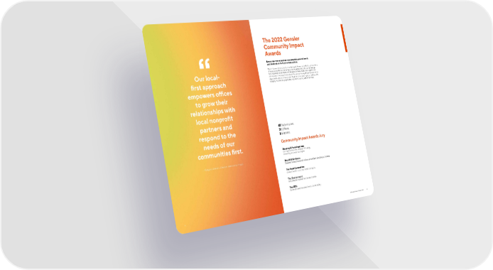The 2022 Gensler Community Impact Awards Every year we recognize our people’s commitment and dedication to their communities. Now in its seventh year, the Community Impact Awards celebrate the achievements of teams across the firm delivering pro bono and low bono efforts that leverage Our local- our unique skills as architects and designers to create measurable impact in our communities. Five projects were chosen by an external jury of experts, each winner aligned with a theme in the Gensler Model of Community Impact, as well as a fifth first approach category, The 20%, for projects that may not fit squarely within the model. empowers offices to grow their relationships with local nonprofit partners and 42 Submissions respond to the 31 Offices needs of our 5 Winners communities first. Community Impact Awards Jury Housing & Homelessness: Chris Ko, Vice President of Impact & Strategy, United Way of Greater Los Angeles — Margaret Skrmetti, Director, Community Impact Health & Wellness: Elizabeth Fennell, Director of Architecture and Workplace Design, Humana The Next Generation: Charity Chandler-Cole, CEO, CASA Los Angeles The Environment: Gina LaMotte, President and Founder, EcoRise The 20%: Damon McLeese, Executive Director, Access Gallery 56 GENSLER ANNUAL REPORT 2022 57