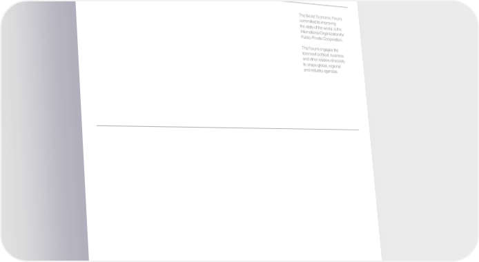The World Economic Forum, committed to improving the state of the world, is the International Organization for Public-Private Cooperation. The Forum engages the foremost political, business and other leaders of society to shape global, regional and industry agendas. World Economic Forum 91–93 route de la Capite CH-1223 Cologny/Geneva Switzerland Tel.: +41 (0) 22 869 1212 Fax: +41 (0) 22 786 2744 contact@weforum.org www.weforum.org
