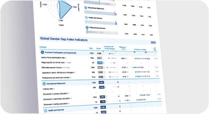 Economy Profile Score Rank Index Edition (imparity = 0, parity = 1) (out of 146 countries) Oman 0.614 139th 2023 Global Gender Gap Index 2023 Edition Overview 2023 2022 Oman score Index and Subindex Score Rank Score Rank average score Economy Global Gender Gap Index 0.614 139th 0.609 139th 0.488 Economic Participation and Opportunity 0.488 135th 0.482 137th E d s u c c i Educational Attainment t a i 0.051 0.957 l t i o o P n 0.957 113th 0.950 113th Health and Survival 0.961 129th 0.961 130th 0.961 Health Political Empowerment 0.051 140th 0.041 140th Global Gender Gap Index Indicators 2023 Compare with Difference Min Global average Indicator Rank Score* F-M Female vs Male Max 0 1 Min Max Economic Participation and Opportunity 135th 0.488 - - - 0-100 Labour-force participation rate % 135th 0.417 -48.87 34.97 83.84 - Wage equality for similar work 1-7 (best) 4th 0.792 - - 0-150 Estimated earned income int'l $ 1,000 139th 0.237 -37.32 11.58 48.90 0-100 Legislators, senior officials and managers % 99th 0.403 -42.55 28.72 71.28 0-100 Professional and technical workers % 131st 0.386 -44.31 27.85 72.15 Educational Attainment 113th 0.957 - - - - Literacy rate % 99th 0.956 - - - Enrolment in primary education % - - - - - 0-200 Enrolment in secondary education % 123rd 0.937 -6.95 102.58 109.53 0-200 Enrolment in tertiary education % 1st 1.000 11.78 41.52 53.30 Health and Survival 129th 0.961 - - - - Sex ratio at birth** % 1st 0.944 - - - Healthy life expectancy** years 138th 1.000 - - Political Empowerment 140th 0.051 - - - 0-100 Women in parliament % 142nd 0.024 -95.40 2.30 97.70 0-100 Women in ministerial positions % 99th 0.176 -70.00 15.00 85.00 0-50 Years with female/male head of state (last 50) 80th 0.000 -50.00 0 50.00 Global Gender Gap Report 2023 291
