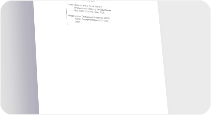 References Hausmann, R., “Learning Without Theory”, Project Syndicate, 30 March 2016, https:// www. project-syndicate.org/commentary/ learning- without-theory-by-ricardohausmann-2016- 03?barrier=accesspaylog. Klasen, S. and C. Wink, “Missing Women: Revisiting the Debate”, Feminist Economics, vol. 9, no. 2–3, 2003, pp. 263–299. Lopez-Claros, A. and S. Zahidi, Women’s Empowerment: Measuring the Global Gender Gap, World Economic Forum, 2005. United Nations Development Programme (UNDP), Human Development Report 2021-2022, 2022. Global Gender Gap Report 2023 76