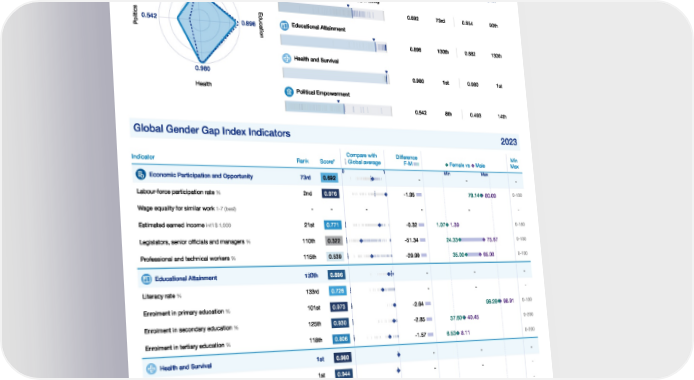 Economy Profile Score Rank Index Edition (imparity = 0, parity = 1) (out of 146 countries) Mozambique 0.778 25th 2023 Global Gender Gap Index 2023 Edition Overview 2023 2022 Mozambique score Index and Subindex Score Rank Score Rank average score Economy Global Gender Gap Index 0.778 25th 0.752 34th 0.692 Economic Participation and Opportunity 0.692 73rd 0.654 90th E d s u c c i Educational Attainment t a i 0.542 0.896 l t i o o P n 0.896 130th 0.882 130th Health and Survival 0.980 1st 0.980 1st 0.980 Health Political Empowerment 0.542 8th 0.493 14th Global Gender Gap Index Indicators 2023 Compare with Difference Min Global average Indicator Rank Score* F-M Female vs Male Max 0 1 Min Max Economic Participation and Opportunity 73rd 0.692 - - - 0-100 Labour-force participation rate % 2nd 0.976 -1.95 78.14 80.09 - Wage equality for similar work 1-7 (best) - - - - - 0-150 Estimated earned income int'l $ 1,000 21st 0.771 -0.32 1.07 1.39 0-100 Legislators, senior officials and managers % 110th 0.322 -51.34 24.33 75.67 0-100 Professional and technical workers % 115th 0.539 -29.99 35.00 65.00 Educational Attainment 130th 0.896 - - - - Literacy rate % 133rd 0.726 - - 0-100 Enrolment in primary education % 101st 0.973 -2.64 96.28 98.91 0-200 Enrolment in secondary education % 125th 0.930 -2.85 37.60 40.45 0-200 Enrolment in tertiary education % 118th 0.806 -1.57 6.53 8.11 Health and Survival 1st 0.980 - - - - Sex ratio at birth** % 1st 0.944 - - - Healthy life expectancy** years 1st 1.060 - - Political Empowerment 8th 0.542 - - - 0-100 Women in parliament % 17th 0.761 -13.60 43.20 56.80 0-100 Women in ministerial positions % 1st 1.000 10.00 45.00 55.00 0-50 Years with female/male head of state (last 50) 28th 0.134 -38.16 5.92 44.08 Global Gender Gap Report 2023 269