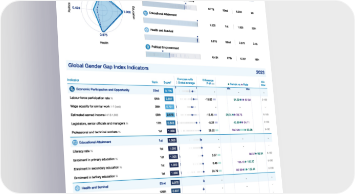 Economy Profile Score Rank Index Edition (imparity = 0, parity = 1) (out of 146 countries) Latvia 0.794 13th 2023 Global Gender Gap Index 2023 Edition Overview 2023 2022 Latvia score Index and Subindex Score Rank Score Rank average score Economy Global Gender Gap Index 0.794 13th 0.771 26th 0.775 Economic Participation and Opportunity 0.775 22nd 0.803 9th E d s u c c i Educational Attainment t a i 0.424 1.000 l t i o o P n 1.000 1st 1.000 25th Health and Survival 0.975 52nd 0.979 34th 0.975 Health Political Empowerment 0.424 27th 0.301 45th Global Gender Gap Index Indicators 2023 Compare with Difference Min Global average Indicator Rank Score* F-M Female vs Male Max 0 1 Min Max Economic Participation and Opportunity 22nd 0.775 - - - 0-100 Labour-force participation rate % 64th 0.807 -13.00 54.32 67.32 - Wage equality for similar work 1-7 (best) 39th 0.701 - - 0-150 Estimated earned income int'l $ 1,000 56th 0.679 -12.45 26.31 38.75 0-100 Legislators, senior officials and managers % 17th 0.848 -8.22 45.89 54.11 0-100 Professional and technical workers % 1st 1.000 26.52 36.74 63.26 Educational Attainment 1st 1.000 - - - - Literacy rate % 1st 1.000 - - 0-100 Enrolment in primary education % 1st 1.000 0.67 98.37 99.04 0-200 Enrolment in secondary education % 1st 1.000 0.48 105.73 106.20 0-200 Enrolment in tertiary education % 1st 1.000 28.79 80.65 109.44 Health and Survival 52nd 0.975 - - - - Sex ratio at birth** % 129th 0.937 - - - Healthy life expectancy** years 1st 1.060 - - Political Empowerment 27th 0.424 - - - 0-100 Women in parliament % 57th 0.408 -42.00 29.00 71.00 0-100 Women in ministerial positions % 20th 0.750 -14.29 42.86 57.14 0-50 Years with female/male head of state (last 50) 15th 0.254 -29.77 10.12 39.89 Global Gender Gap Report 2023 233