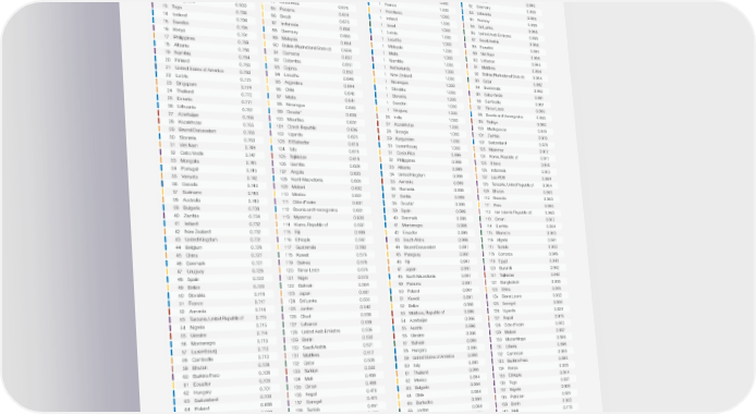 TABLE 1.2 The Global Gender Gap Index 2023, results by subindex Economic Participation and Opportunity Educational Attainment Rank Country Score (0–1) Rank Country Score (0–1) Rank Country Score (0–1) Rank Country Score (0–1) 1 Liberia 0.895 74 Austria 0.692 1 Argentina 1.000 74 Vanuatu 0.991 2 Jamaica 0.894 75 Israel 0.688 1 Belgium 1.000 75 Belarus 0.991 3 Moldova, Republic of 0.863 76 Paraguay 0.685 1 Botswana 1.000 76 Portugal 0.991 4 Barbados 0.860 77 Netherlands 0.684 1 Canada 1.000 77 Zimbabwe 0.991 5 Lao PDR 0.851 78 Sierra Leone 0.684 1 Colombia 1.000 78 Australia 0.991 6 Eswatini 0.838 79 Peru 0.683 1 Czech Republic 1.000 79 Iceland 0.991 7 Belarus 0.819 80 Ghana 0.682 1 Dominican Republic 1.000 80 Cyprus 0.990 8 Burundi 0.810 81 South Africa 0.676 1 Estonia 1.000 81 Greece 0.990 9 Botswana 0.807 82 Greece 0.676 1 Finland 1.000 82 Germany 0.989 10 Zimbabwe 0.801 83 Congo, Dem. Rep. of the 0.676 1 France 1.000 83 Lithuania 0.989 11 Norway 0.800 84 Costa Rica 0.676 1 Honduras 1.000 84 Norway 0.989 12 Madagascar 0.800 85 Panama 0.674 1 Ireland 1.000 85 Sri Lanka 0.988 13 Togo 0.796 86 Brazil 0.670 1 Israel 1.000 86 United Arab Emirates 0.988 14 Iceland 0.796 87 Indonesia 0.666 1 Latvia 1.000 87 Saudi Arabia 0.986 15 Sweden 0.795 88 Germany 0.665 1 Lesotho 1.000 88 Eswatini 0.985 16 Kenya 0.791 89 Malaysia 0.664 1 Malaysia 1.000 89 Viet Nam 0.985 17 Philippines 0.789 90 Bolivia (Plurinational State of) 0.658 1 Malta 1.000 90 Lebanon 0.984 18 Albania 0.786 91 Comoros 0.657 1 Namibia 1.000 91 Maldives 0.984 19 Namibia 0.784 92 Colombia 0.657 1 Netherlands 1.000 92 Bolivia (Plurinational State of) 0.984 20 Finland 0.783 93 Cyprus 0.652 1 New Zealand 1.000 93 Qatar 0.982 21 United States of America 0.780 94 Lesotho 0.648 1 Nicaragua 1.000 94 Guatemala 0.982 22 Latvia 0.775 95 Argentina 0.644 1 Slovakia 1.000 95 Cabo Verde 0.981 23 Singapore 0.774 96 Chile 0.642 1 Slovenia 1.000 96 Cambodia 0.981 24 Thailand 0.772 97 Malta 0.641 1 Sweden 1.000 97 Timor-Leste 0.980 25 Estonia 0.771 98 Nicaragua 0.640 1 Uruguay 1.000 98 Bosnia and Herzegovina 0.980 26 Lithuania 0.767 99 Croatia* 0.639 26 India 1.000 99 Türkiye 0.980 27 Azerbaijan 0.766 100 Mauritius 0.637 27 Kazakhstan 1.000 100 Madagascar 0.979 28 Kazakhstan 0.765 101 Czech Republic 0.636 28 Georgia 1.000 101 Zambia 0.979 29 Brunei Darussalam 0.760 102 Uganda 0.623 29 Kyrgyzstan 1.000 102 Switzerland 0.978 30 Slovenia 0.760 103 El Salvador 0.619 30 Luxembourg 1.000 103 Myanmar 0.977 31 Viet Nam 0.749 104 Italy 0.618 31 Costa Rica 0.999 104 Korea, Republic of 0.977 32 Cabo Verde 0.747 105 Tajikistan 0.618 32 Philippines 0.999 105 Ghana 0.974 33 Mongolia 0.745 106 Gambia 0.609 33 Albania 0.999 106 Indonesia 0.972 34 Portugal 0.745 107 Angola 0.605 34 United Kingdom 0.999 107 Lao PDR 0.964 35 Vanuatu 0.742 108 North Macedonia 0.605 35 Armenia 0.999 108 Tanzania, United Republic of 0.964 36 Canada 0.740 109 Malawi 0.602 36 Romania 0.999 109 Bhutan 0.963 37 Suriname 0.740 110 Mexico 0.601 37 Serbia 0.999 110 Rwanda 0.963 38 Australia 0.740 111 Côte d'Ivoire 0.601 38 Croatia* 0.998 111 Peru 0.960 39 Bulgaria 0.738 112 Bosnia and Herzegovina 0.601 39 Spain 0.998 112 Iran (Islamic Republic of) 0.960 40 Zambia 0.734 113 Myanmar 0.600 40 Denmark 0.998 113 Oman 0.957 41 Ireland 0.732 114 Korea, Republic of 0.597 41 Montenegro 0.998 114 Gambia 0.954 42 New Zealand 0.732 115 Fiji 0.588 42 Ecuador 0.998 115 Morocco 0.953 43 United Kingdom 0.731 116 Ethiopia 0.587 43 South Africa 0.998 116 Algeria 0.951 44 Belgium 0.728 117 Guatemala 0.580 44 Brunei Darussalam 0.997 117 Tunisia 0.950 45 China 0.727 118 Kuwait 0.579 45 Paraguay 0.997 118 Comoros 0.949 46 Denmark 0.727 119 Guinea 0.576 46 Fiji 0.997 119 Egypt 0.943 47 Uruguay 0.726 120 Timor-Leste 0.574 47 Japan 0.997 120 Burundi 0.942 48 Spain 0.722 121 Niger 0.570 48 North Macedonia 0.997 121 Tajikistan 0.942 49 Belize 0.720 122 Bahrain 0.564 49 Panama 0.997 122 Bangladesh 0.936 50 Slovakia 0.718 123 Japan 0.561 50 Poland 0.997 123 China 0.935 51 France 0.717 124 Sri Lanka 0.555 51 Kuwait 0.997 124 Sierra Leone 0.932 52 Armenia 0.716 125 Jordan 0.542 52 Belize 0.996 125 Senegal 0.926 53 Tanzania, United Republic of 0.715 126 Chad 0.538 53 Moldova, Republic of 0.996 126 Uganda 0.924 54 Nigeria 0.715 127 Lebanon 0.538 54 Azerbaijan 0.996 127 Nepal 0.918 55 Ukraine 0.714 128 United Arab Emirates 0.536 55 Austria 0.996 128 Côte d'Ivoire 0.902 56 Montenegro 0.710 129 Benin 0.530 56 Ukraine 0.996 129 Malawi 0.897 57 Luxembourg 0.710 130 Saudi Arabia 0.521 57 Bahrain 0.995 130 Mozambique 0.896 58 Cambodia 0.710 131 Maldives 0.512 58 Hungary 0.995 131 Liberia 0.896 59 Bhutan 0.708 132 Qatar 0.508 59 United States of America 0.995 132 Cameroon 0.895 60 Burkina Faso 0.708 133 Türkiye 0.500 60 Italy 0.995 133 Burkina Faso 0.893 61 Ecuador 0.705 134 Mali 0.489 61 Thailand 0.995 134 Kenya 0.858 62 Hungary 0.701 135 Oman 0.488 62 Mexico 0.994 135 Ethiopia 0.854 63 Switzerland 0.700 136 Nepal 0.476 63 Bulgaria 0.994 136 Togo 0.837 64 Poland 0.699 137 Senegal 0.475 64 Chile 0.994 137 Nigeria 0.826 65 Dominican Republic 0.699 138 Tunisia 0.451 65 Barbados 0.994 138 Pakistan 0.825 66 Honduras 0.699 139 Bangladesh 0.438 66 Jordan 0.994 139 Benin 0.802 67 Rwanda 0.699 140 Egypt 0.420 67 Mongolia 0.994 140 Mali 0.779 68 Georgia 0.697 141 Morocco 0.404 68 Jamaica 0.993 141 Niger 0.769 69 Serbia 0.697 142 India 0.367 69 El Salvador 0.993 142 Angola 0.738 70 Cameroon 0.694 143 Pakistan 0.362 70 Suriname 0.993 143 Guinea 0.710 71 Kyrgyzstan 0.694 144 Iran (Islamic Republic of) 0.344 71 Mauritius 0.993 144 Congo, Dem. Rep. of the 0.683 72 Romania 0.693 145 Algeria 0.317 72 Singapore 0.993 145 Chad 0.637 73 Mozambique 0.692 146 Afghanistan 0.188 73 Brazil 0.992 146 Afghanistan 0.482 Eurasia and East Asia Europe Latin America Middle East North America Southern Sub-Saharan Central Asia and the Pacific and the Caribbean and North Africa Asia Africa Source Note World Economic Forum, Global Gender Gap Index, 2023. * New t