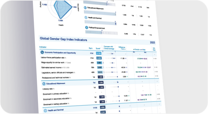 Economy Profile Score Rank Index Edition (imparity = 0, parity = 1) (out of 146 countries) Ireland 0.795 11th 2023 Global Gender Gap Index 2023 Edition Overview 2023 2022 Ireland score Index and Subindex Score Rank Score Rank average score Economy Global Gender Gap Index 0.795 11th 0.804 9th 0.732 Economic Participation and Opportunity 0.732 41st 0.746 35th E d s u c c i Educational Attainment t a i 0.482 1.000 l t i o o P n 1.000 1st 1.000 1st Health and Survival 0.964 111th 0.964 113th 0.964 Health Political Empowerment 0.482 17th 0.507 11th Global Gender Gap Index Indicators 2023 Compare with Difference Min Global average Indicator Rank Score* F-M Female vs Male Max 0 1 Min Max Economic Participation and Opportunity 41st 0.732 - - - 0-100 Labour-force participation rate % 51st 0.839 -11.09 57.86 68.95 - Wage equality for similar work 1-7 (best) 46th 0.687 - - 0-150 Estimated earned income int'l $ 1,000 78th 0.632 -46.34 79.53 125.87 0-100 Legislators, senior officials and managers % 49th 0.613 -23.98 38.01 61.99 0-100 Professional and technical workers % 1st 1.000 2.99 48.51 51.49 Educational Attainment 1st 1.000 - - - - Literacy rate % 1st 1.000 - - - Enrolment in primary education % - - - - - 0-200 Enrolment in secondary education % 1st 1.000 13.20 128.77 141.98 0-200 Enrolment in tertiary education % 1st 1.000 11.97 68.78 80.76 Health and Survival 111th 0.964 - - - - Sex ratio at birth** % 1st 0.944 - - - Healthy life expectancy** years 120th 1.010 - - Political Empowerment 17th 0.482 - - - 0-100 Women in parliament % 85th 0.300 -53.80 23.10 76.90 0-100 Women in ministerial positions % 62nd 0.300 -53.85 23.08 76.92 0-50 Years with female/male head of state (last 50) 3rd 0.712 -8.43 20.79 29.21 Global Gender Gap Report 2023 209
