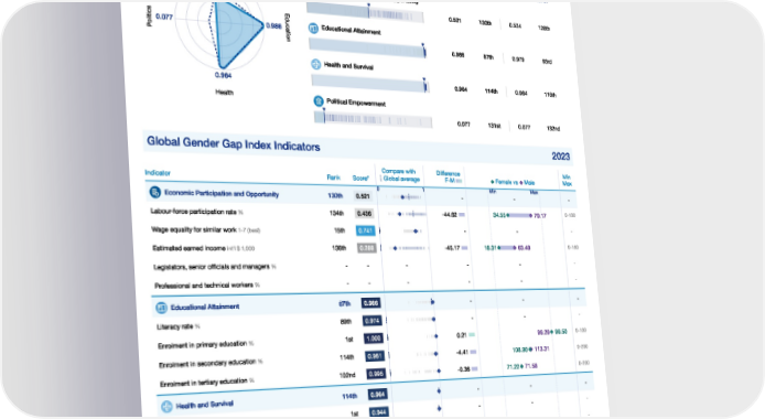 Economy Profile Score Rank Index Edition (imparity = 0, parity = 1) (out of 146 countries) Saudi Arabia 0.637 131st 2023 Global Gender Gap Index 2023 Edition Overview 2023 2022 Saudi Arabia score Index and Subindex Score Rank Score Rank average score Economy Global Gender Gap Index 0.637 131st 0.636 127th 0.521 Economic Participation and Opportunity 0.521 130th 0.524 128th E d s u c c i Educational Attainment t a i 0.077 0.986 l t i o o P n 0.986 87th 0.979 93rd Health and Survival 0.964 114th 0.964 116th 0.964 Health Political Empowerment 0.077 131st 0.077 132nd Global Gender Gap Index Indicators 2023 Compare with Difference Min Global average Indicator Rank Score* F-M Female vs Male Max 0 1 Min Max Economic Participation and Opportunity 130th 0.521 - - - 0-100 Labour-force participation rate % 134th 0.436 -44.62 34.55 79.17 - Wage equality for similar work 1-7 (best) 15th 0.741 - - 0-150 Estimated earned income int'l $ 1,000 136th 0.288 -45.17 18.31 63.48 - Legislators, senior officials and managers % - - - - - - Professional and technical workers % - - - - - Educational Attainment 87th 0.986 - - - - Literacy rate % 89th 0.974 - - 0-100 Enrolment in primary education % 1st 1.000 0.21 99.29 99.50 0-200 Enrolment in secondary education % 114th 0.961 -4.41 108.90 113.31 0-200 Enrolment in tertiary education % 102nd 0.995 -0.36 71.22 71.58 Health and Survival 114th 0.964 - - - - Sex ratio at birth** % 1st 0.944 - - - Healthy life expectancy** years 123rd 1.009 - - Political Empowerment 131st 0.077 - - - 0-100 Women in parliament % 99th 0.248 -60.20 19.90 80.10 0-100 Women in ministerial positions % 140th 0.000 -100.00 0 100.00 0-50 Years with female/male head of state (last 50) 80th 0.000 -50.00 0 50.00 Global Gender Gap Report 2023 313
