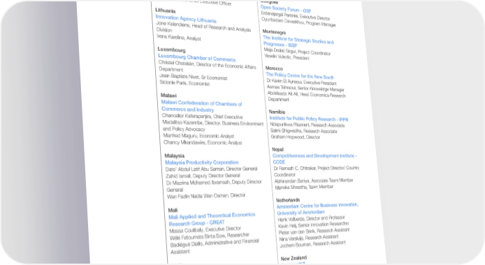 Latvia Mexico Stockholm School of Economics in Riga Instituto Mexicano para la Competitividad - Arnis Sauka, Head of the Centre for Sustainable IMCO Development Valeria Moy, General Director Ivania Mazari, Program Manager Lesotho Ministry of the Economy Private Sector Foundation of Lesotho - PSFL Jorge Eduardo Arreola Cavazos, General Director Thabo Qhesi, CEO for Competitiveness and Competition Bokang Tsoanamatsie, Public Relations Of昀椀cer Carlos Rubén Altamirano Márquez, Director Qothoase Khofane, Researcher Fernando Tonatiuh Parra Calvo, Underdirector for Competitiveness Liberia, Sierra Leone GQRDOTCOM Limited - GQR Mongolia Omodele Jones, Chief Executive Of昀椀cer Open Society Forum - OSF Erdenejargal Perenlei, Executive Director Lithuania Oyunbadam Davaakhuu, Program Manager Innovation Agency Lithuania Jone Kalendiene, Head of Research and Analysis Montenegro Division The Institute for Strategic Studies and Irena Karelina, Analyst Prognoses - ISSP Maja Drakic Grgur, Project Coordinator Luxembourg Veselin Vukotic, President Luxembourg Chamber of Commerce Christel Chatelain, Director of the Economic Affairs Morocco Department The Policy Centre for the New South Jean-Baptiste Nivet, Sr Economist Dr Karim El Aynaoui, Executive President Sidonie Paris, Economist Asmaa Tahraoui, Senior Knoweldge Manager Abdelaaziz Ait Ali, Head Economics Research Malawi Department Malawi Confederation of Chambers of Commerce and Industry Namibia Chancellor Kaferapanjira, Chief Executive Institute for Public Policy Research - IPPR Madalitso Kazembe, Director, Business Environment Ndapunikwa Fikameni, Research Associate and Policy Advocacy Salmi Shigwedha, Research Associate Manfred Maguru, Economic Analyst Graham Hopwood, Director Chancy Mkandawire, Economic Analyst Nepal Malaysia Competitiveness and Development Institute - Malaysia Productivity Corporation CODE Dato’ Abdul Latif Abu Seman, Director General Dr Ramesh C. Chitrakar, Project Director/ Country Zahid Ismail, Deputy Director General Coordinator Dr Mazrina Mohamed Ibramsah, Deputy Director Abhinandan Baniya, Associate Team Member General Menaka Shrestha, Team Member Wan Fazlin Nadia Wan Osman, Director Netherlands Mali Amsterdam Centre for Business Innovation, Mali Applied and Theoretical Economics University of Amsterdam Research Group - GREAT Henk Volberda, Director and Professor Massa Coulibaly, Executive Director Kevin Heij, Senior Innovation Researcher Wélé Fatoumata Binta Sow, Researcher Pieter van den Brink, Research Assistant Badiégué Diallo, Administrative and Financial Nina Versluijs, Research Assistant Assistant Jochem Bouman, Research Assistant Malta New Zealand Competitive Malta - Foundation for National BusinessNZ Competitiveness Kirk Hope, CEO Adrian Said, Associate Kathryn Asare, Manager Communications Matthew Castillo, Associate Nigeria Mauritius Nigerian Economic Summit Group - NESG Economic Development Board Laoye Jaiyeola, Chief Executive Of昀椀cer Sanroy Seechurn, Head of Department Dr Olusegun Omisakin, Director of Research and Ken Poonoosamy, CEO Development Dooshala Ramjutun-Ramlaul, Manager Sodik Olo昀椀n, Economist Global Gender Gap Report 2023 379