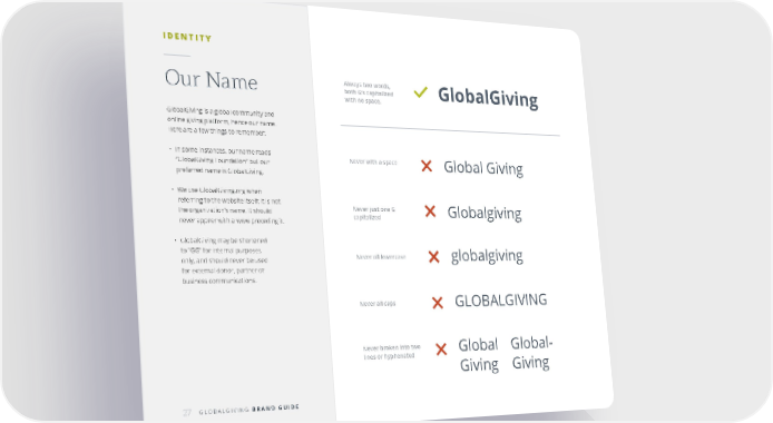 GlobalGiving Brand Book Page 26 Page 28