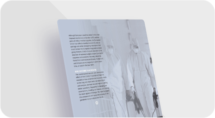 Although European countries early in the crisis imposed restrictions on border tra昀케c and ex- ports of critical medical supplies, the European Union has rallied around an economic rescue package and other emergency measures that could bolster the European integration project going forward. COVID-19 could also lead to re- direction of national budgets toward pandemic response and economic recovery, diverting funds from defense expenditures, foreign aid, and infrastructure programs in some coun- tries, at least in the near term. MORE QUESTIONS THAN ANSWERS The unanticipated second- and third-order e昀昀ects of the COVID-19 pandemic have re- minded us how uncertain the future is—both in the long and short term. As researchers and analysts, we must be ever vigilant, asking better questions, frequently challenging our assumptions, checking our biases, and looking for weak signals of change. We need to expect the unexpected and apply the lessons of this pandemic to our craft in the future. Photo / Bigstock A MORE CONTESTED WORLD 13