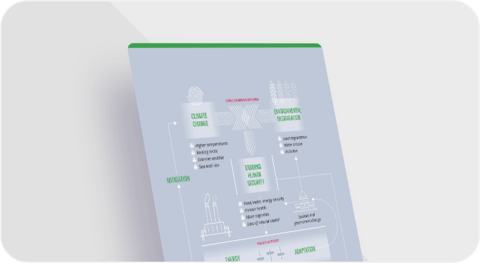 SIMULTANEOUS DRIVERS CLIMATE ENVIRONMENTAL CHANGE DEGRADATION Higher temperatures Land degradation Melting Arctic Water misuse Extreme weather Pollution Sea level rise ERODING MITIGATION HUMAN SECURITY Food, water, energy security Human health More migration Loss of natural capital Societal and government change POLICY ACTIVITY ENERGY ADAPTATION TECHNOLOGIES KEY CHALLENGES / UNCERTAINTIES Pace Unequal Geoengineering burdens INSTABILITY CONFLICT A MORE CONTESTED WORLD 31 Photo / Pexels