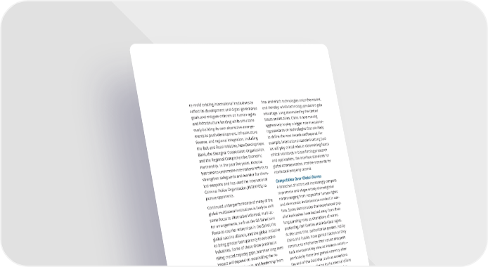 re-mold existing international institutions to how and which technologies enter the market, re昀氀ect its development and digital governance and thereby, which technology producers gain goals and mitigate criticism on human rights advantage. Long dominated by the United and infrastructure lending while simultane- States and its allies, China is now moving ously building its own alternative arrange- aggressively to play a bigger role in establish- ments to push development, infrastructure ing standards on technologies that are likely 昀椀nance, and regional integration, including to de昀椀ne the next decade and beyond. For the Belt and Road Initiative, New Development example, international standard-setting bod- Bank, the Shanghai Cooperation Organization, ies will play critical roles in determining future and the Regional Comprehensive Economic ethical standards in biotechnology research Partnership. In the past 昀椀ve years, Moscow and applications, the interface standards for has tried to undermine international e昀昀orts to global communication, and the standards for strengthen safeguards and monitor for chem- intellectual property control. ical weapons and has used the International Criminal Police Organization (INTERPOL) to Competition Over Global Norms pursue opponents. A broad set of actors will increasingly compete to promote and shape widely shared global Continued underperformance of many of the norms ranging from respect for human rights global multilateral institutions is likely to shift and democratic institutions to conduct in war- some focus to alternative informal, multi-ac- fare. Some democracies that experienced pop- tor arrangements, such as the G5 Sahel Joint ulist backlashes have backed away from their Force to counter extremists in the Sahel, the longstanding roles as champions of norms global vaccine alliance, and the global initiative protecting civil liberties and individual rights. to bring greater transparency to extractive At the same time, authoritarian powers, led by industries. Some of these show promise in China and Russia, have gained traction as they 昀椀lling crucial capacity gaps, but their long-term continue to emphasize their values and push impact will depend on marshalling the re- back on norms they view as Western-centric— sources, political buy-in, and leadership from particularly those that gained currency after major and regional powers. Some regions, the end of the Cold War, such as exceptions particularly Sub-Saharan Africa, Europe, and that allow for interfering in the internal a昀昀airs Southeast Asia, are likely to continue moves of member states to defend human rights. to strengthen regional organizations and During the next 20 years, this competition integration, whereas other regions are likely probably will make it harder to maintain com- to struggle to cooperate because of lingering mitment to many established norms and to inter-state divisions. develop new ones to govern behavior in new Standards as a Battlespace domains, including cyber, space, sea beds, International standards agreements sup- and the Arctic. Existing institutions and norms port the emergence of new technologies by are not well designed for evolving areas such reducing market uncertainty and establish- as biotechnology, cyber, and environmental ing norms. Membership on standard-setting response and for the growing number of new bodies is increasingly competitive, largely actors operating in space. Many norm-setting because of the in昀氀uence these bodies have on e昀昀orts may shift from consensus-based, uni- 100 GLOBAL TRENDS 2040