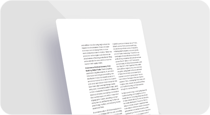and additive manufacturing might reduce the in global superstar or “winner-take-all” 昀椀rms. importance of economies of scale and labor Global superstar 昀椀rms are the world’s larg- as an input and encourage 昀椀rms to move est and most pro昀椀table across all industries, more production closer to markets. These new including pharmaceuticals, consumer goods, production technologies could diminish the and information technology. These 昀椀rms cap- attractiveness of locating production in China tured approximately 80 percent of economic and accelerate the rate at which companies pro昀椀t among companies with annual revenues reorient their supply chains. greater than $1 billion in 2017 and earned E-Commerce Platform Economy Firms approximately 1.6 times more economic pro昀椀t Enabling Global Trade. Cloud computing, than they did in 1997. Superstar 昀椀rms, while automation, big data analytics, AI, and other domiciled in a single country, have sales that information technologies are enabling new are global, and growth in the size and reach distribution modes that expand access to in- of these 昀椀rms is likely to translate into an ternational markets for all sellers but especial- increase in economic globalization. The eco- ly for small and medium-sized enterprises that nomic factors that support the rise of global have historically faced high foreign market superstar 昀椀rms, including high 昀椀xed costs, low marginal costs, network and platform e昀昀ects, entry costs. E-commerce platform 昀椀rms, which and machine learning, are likely to persist in 2020 included the Chinese 昀椀rm Alibaba and through the next two decades. America’s Amazon, are creating a marketplace that matches buyers and sellers independent Further, as technology, including big data and of geographic location, providing a compar- machine learning, and intangibles, such as atively low-cost and low-risk way for 昀椀rms to brand, become increasingly important drivers enter foreign markets, and increasing interna- of value creation during the next two decades, tional trade 昀氀ows. the market dominance of superstar 昀椀rms is E-commerce sales in 2018 were equivalent to likely to increase. Growth in superstar 昀椀rms 30 percent of global GDP that year, according is also likely to a昀昀ect the division of economic to data released in 2020. International e-com- gains between and within countries, poten- merce spanned business-to-business and tially leading to friction and uneven regulation as host economies try to capture some of business-to-consumer sales; approximately 25 percent of all online shoppers made cross-bor- the value created by these 昀椀rms. The power der purchases in 2018. Looking forward, of these 昀椀rms beyond business—including increased access to the Internet, falling data control of data and information 昀氀ows—will en- costs, growth in smartphone ownership, and courage government e昀昀orts to regulate them, a shift to online purchases post-pandemic essentially as public utilities, or possibly break are likely to result in more e-commerce sales, them up. with many of these sales taking place on large State Owned Multinationals Continue to global e-commerce platforms. Expand. State-owned multinationals (SOM- Multinational “Superstar” Firms Perpetuate NCs), most of which originated in China, India, Economic Globalization. Technology and dig- Russia, Saudi Arabia, United Arab Emirates itization are also transforming the structure of (UAE), and some EU member countries, almost some industries, increasing the prevalence of certainly will continue to be active participants oligopolies and near monopolies and resulting in international commerce. Some SOMNCs 50 GLOBAL TRENDS 2040