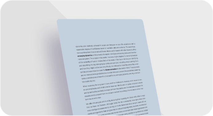 dynamics and relatively universal in scope, and because we can offer projections with a reasonable degree of con昀椀dence based on available data and evidence. The second sec- tion examines how these structural forces interact and intersect with other factors to affect emerging dynamics at three levels of analysis: individuals and society, states, and the inter- national system. The analysis in this section involves a higher degree of uncertainty because of the variability of human choices that will be made in the future. We focus on identifying and describing the key emerging dynamics at each level, including what is driving them and how they might evolve over time. Finally, the third section identi昀椀es several key uncer- tainties and uses these to create 昀椀ve future scenarios for the world in 2040. These scenarios are not intended to be predictions but to widen the aperture as to the possibilities, exploring various combinations of how the structural forces, emerging dynamics, and key uncertain- ties could play out. When exploring the long-term future, another challenge is choosing which issues to cov- er and emphasize, and which ones to leave out. We focused on global, long-term trends and dynamics that are likely to shape communities, states, and the international system for decades and to present them in a broader context. Accordingly, there is less on other near- term issues and crises. We offer this analysis with humility, knowing that invariably the future will unfold in ways that we have not foreseen. Although Global Trends is necessarily more speculative than most intelligence assessments, we rely on the fundamentals of our analytic tradecraft: we construct arguments that are grounded in data and appropriately caveated; we show our work and explain what we know and do not know; we consider alternative hypotheses and how we could be wrong; and we do not advocate policy positions or preferences. Global Trends re昀氀ects the National Intelligence Council’s perspective on these future trends; it does not represent the of昀椀cial, coordinated view of the US Intelligence Community nor US policy. We are proud to publish this report publicly for audiences around the world to read and consider. We hope that it serves as a useful resource and provokes a conversation about our collective future. Finally, a note of gratitude to colleagues on the National Intelligence Council and the wider Intelligence Community who joined in this journey to understand our world, explore the future, and draft this report. The Strategic Futures Group National Intelligence Council March 2021 vi GLOBAL TRENDS 2040