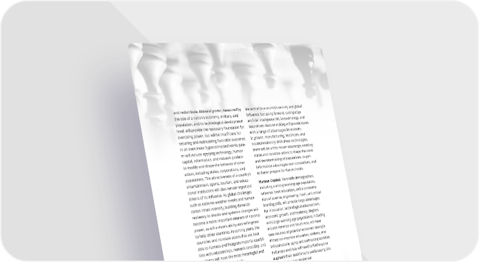 and redistribute. Material power, measured by be central to a country’s security and global the size of a nation’s economy, military, and in昀氀uence, but going forward, cutting edge population, and its technological development arti昀椀cial intelligence (AI), biotechnology, and level, will provide the necessary foundation for data-driven decisionmaking will provide states exercising power, but will be insu昀케cient for with a range of advantages for econom- securing and maintaining favorable outcomes. ic growth, manufacturing, healthcare, and In an even more hyperconnected world, pow- societal resiliency. With these technologies, er will include applying technology, human there will be a 昀椀rst mover advantage, enabling capital, information, and network position states and nonstate actors to shape the views to modify and shape the behavior of other and decisionmaking of populations, to gain actors, including states, corporations, and information advantages over competitors, and populations. The attractiveness of a country’s to better prepare for future shocks. entertainment, sports, tourism, and educa- Human Capital. Favorable demographics, tional institutions will also remain important including a strong working-age population, drivers of its in昀氀uence. As global challenges universal basic education, and a concentra- such as extreme weather events and human- tion of science, engineering, math, and critical itarian crises intensify, building domestic thinking skills, will provide large advantages resiliency to shocks and systemic changes will for innovation, technological advancement, become a more important element of national economic growth, and resiliency. Regions power, as will a state’s ability and willingness with large working-age populations, including to help other countries. In coming years, the in Latin America and South Asia, will have countries and nonstate actors that are best new sources of potential economic strength able to harness and integrate material capabil- if they can improve education, skillsets, and ities with relationships, network centrality, and infrastructure; aging and contracting societies resiliency will have the most meaningful and in Europe and Asia will need to 昀椀nd ways to sustainable in昀氀uence globally. augment their workforce to avoid seeing this Material Power. Military capabilities and element of power weakened. economic size will remain the foundation of Networks and Nodes. Control of key sites state capacity and power projection, compel- of exchange, including telecommunications, ling other countries to take a state’s interests and policies into account. These two areas of 昀椀nance, data 昀氀ows, and manufacturing supply power allow states to maintain their security chains, will give countries and corporations and to amass resources that enable other the ability to gain valuable information, deny elements of power. access to rivals, and even coerce behavior. Many of these networks, which are dispropor- Technology Power. Technology, particu- tionately concentrated in the United States, larly military technologies, will continue to Europe, and China, have become entrenched A MORE CONTESTED WORLD 93 Photo / Bigstock