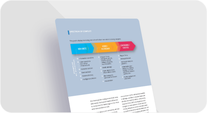 SPECTRUM OF CONFLICT This graphic displays increasing levels of conflict from non-violent to strategic weapons. NON-KINETIC HYBRID / CONVENTIONAL / INTERMEDIATE STRATEGIC Regular forces Information operations Irregular forces (insurgents, proxies, Embargo/blockade Cyber operations terrorists, private (non-critical military companies, Attributable weapons infrastructure) maritime militia) platforms Economic coercion Kinetic sabotage EXAMPLES Catastrophic cyber attacks (i.e. crippling Exercises/tests Cyber attacks (some OF ACTIVITIES strategic command critical infrastructure) Blackmail/bribery and control, financial systems, etc.) Electromagnetic Intelligence collection spectrum interference Nuclear weapons and other WMD Assassination the challenges for making sense of and using one participant su昀昀ers substantial casualties information. Some governments will be able or damage—are likely to escalate faster and to manipulate information against their rivals with less warning than before, compressing with more precision at scale. response times and increasing pressure to Increasing sensors and connectivity will also delegate or even automate certain decision- make militaries and governments more making. Inexpensive sensors and data analyt- vulnerable to cyber and electromagnetic ics could revolutionize real-time detection and attacks. The development of cyber weapons, processing by 2040, but many militaries most likely will still struggle to distill meanings and doctrine, and procedures in conjunction with compile options for policymakers without AI other weapons is likely to mature signi昀椀cant- and other algorithmic decisionmaking aids. ly during the next 20 years, increasing the This increased speed is likely to heighten the consequences of cyber con昀氀ict. Countries that risk of miscalculation or inadvertent escalation can disperse their networks and important to full-scale war. war昀椀ghting assets, shorten decisionmaking processes, and build in redundancy at every Additional Players level are likely to be better positioned for Some state-to-state con昀氀icts and internation- future con昀氀icts. al interventions in local con昀氀icts are likely to involve more armed proxies, private military Interstate kinetic con昀氀icts—de昀椀ned as direct companies, hackers, and terrorist organiza- engagement between the military forces of tions as governments seek to reduce risks and two or more adversaries in which at least 104 GLOBAL TRENDS 2040