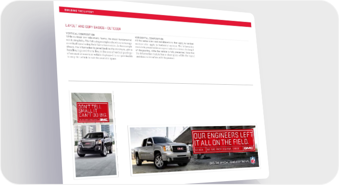 BUILDING THE LAYOUT LAYOUT AND COPY BASICS – OUTDOOR VERTICAL COMPOSITION HORIZONTAL COMPOSITION While outdoor can take many forms, the most fundamental All the same rules and considerations that apply to vertical rule is simplicity. The following examples show how to manage outdoor also apply to horizontal outdoor. The information a vertical layout using the information module. As the example module is presented in an aspect ratio that mimics the length shows, the information is pared back to the minimum, with a of the posting, while the vehicle is fully presented. Note that headline, logo and theme line. In the case of vertical postings— the information module has a clear space within the layout often used at events or vehicle displays—it is not permissible and does not interfere with the product. to crop the vehicle to suit the available space. DON'T TELL SMALL IT CAN'T DO BIG. WE ARE PROFESSIONAL GRADE. OUR ENGINEERS LEFT IT ALL ON THE FIELD. SIERRA WE ARE PROFESSIONAL GRADE. GMC. THE OFFICIAL VEHICLE OF THE NFL.