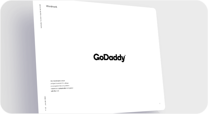 GoDaddy Brand Book Page 7 Page 98 Wordmark Our wordmark is clean and professional. It's always accompanied by a registered trademark symbol when not paired with the GO. V 1.0 January 2020 GoDaddy Trademark Guidelines © 2020