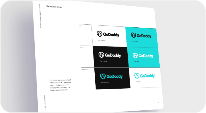 10 Our lockup has maximum impact when it appears on a contrasting color — ideally black, white or everyday blue. Don’t place it on images, accents or textures. Placement Rules PRINT ONLY PRINT & DIGITAL EVERYDAY BLUE WHITE BLACK PRINT & DIGITAL PRINT & DIGITAL PRINT & DIGITAL PRINT ONLY V 1.0 January 2020 GoDaddy Trademark Guidelines © 2020