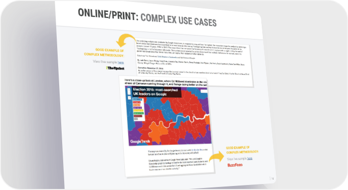 Google Trends Brand Book Page 17 Page 19ONLINE/PRINT: COMPLEX USE CASES GOOD EXAMPLE OF COMPLEX METHODOLOGY: View live sample here. GOOD EXAMPLE OF COMPLEX METHODOLOGY: View live sample here. 18