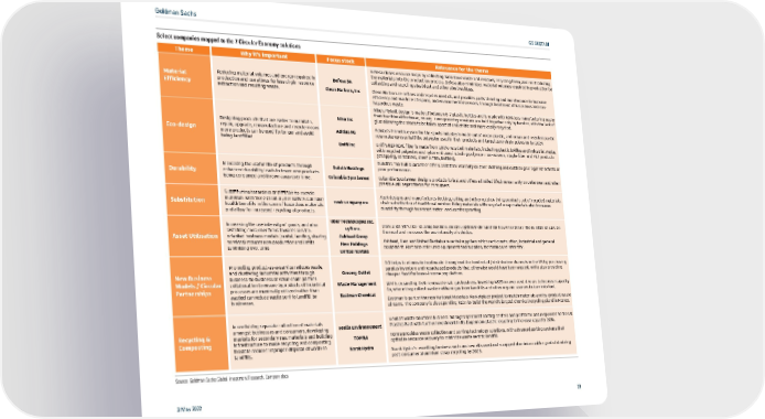 Goldman Sachs GS SUSTAIN Select companies mapped to the 7 Circular Economy solutions Source: Goldman Sachs Global Investment Research, Company data 3 May 2022 <9