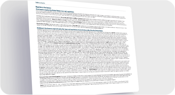 Goldman Sachs Regulatory disclosures Disclosures required by United States laws and regulations See company-specific regulatory disclosures above for any of the following disclosures required as to companies referred to in this report: manager or co-manager in a pending transaction; 1% or other ownership; compensation for certain services; types of client relationships; managed/co-managed public offerings in prior periods; directorships; for equity securities, market making and/or specialist role. Goldman Sachs trades or may trade as a principal in debt securities (or in related derivatives) of issuers discussed in this report. The following are additional required disclosures: Ownership and material conflicts of interest: Goldman Sachs policy prohibits its analysts, professionals reporting to analysts and members of their households from owning securities of any company in the analysts area of coverage. Analyst compensation: Analysts are paid in part based on the profitability of Goldman Sachs, which includes investment banking revenues. Analyst as officer or director: Goldman Sachs policy generally prohibits its analysts, persons reporting to analysts or members of their households from serving as an officer, director or advisor of any company in the analysts area of coverage. Non-U.S. Analysts: Non-U.S. analysts may not be associated persons of Goldman Sachs & Co. LLC and therefore may not be y the analy subject to FINRA Rule 2241 or FINRA Rule 2242 restrictions on communications with subject company, public appearances and trading securities held b sts. Distribution of ratings: See the distribution of ratings disclosure above. Price chart: See the price chart, with changes of ratings and price targets in prior periods, above, or, if electronic format or if with respect to multiple companies which are the subject of this report, on the Goldman Sachs website at https://www.gs.com/research/hedge.html. Additional disclosures required under the laws and regulations of jurisdictions other than the United States The following disclosures are those required by the jurisdiction indicated, except to the extent already made above pursuant to United States laws and regulations. Australia: Goldman Sachs Australia Pty vide banking services, nor carry on a banking business, in Ltd and its affiliates are not authorised deposit-taking institutions (as that term is defined in the Banking Act 1959 (Cth)) in Australia and do not pro Australia. This research, and any access to it, is intended only for “wholesale clients” within the meaning of the Australian Corporations Act, unless otherwise agreed by Goldman Sachs. In producing h are the research reports, members of the Global Investment Research Division of Goldman Sachs Australia may attend site visits and other meetings hosted by the companies and other entities whic Australia considers it is appropriate subject of its research reports. In some instances the costs of such site visits or meetings may be met in part or in whole by the issuers concerned if Goldman Sachs y financial product advice, it is general advice only and has and reasonable in the specific circumstances relating to the site visit or meeting. To the extent that the contents of this document contains an y such advice, consider the appropriateness of the advice been prepared by Goldman Sachs without taking into account a clients objectives, financial situation or needs. A client should, before acting on an having regard to the clients own objectives, financial situation and needs. A copy of certain Goldman Sachs Australia and New Zealand disclosure of interests and a copy of Goldman Sachs Australian Sell-Side Research Independence Policy Statement are available at: https://www.goldmansachs.com/disclosures/australia-new-zealand/index.html. Brazil: Disclosure information in relation to CVM Resolution n. 20 is available at https://www.gs.com/worldwide/brazil/area/gir/index.html. Where applicable, the Brazil-registered analyst primarily responsible for the content of this research report, as Canada: This information is being provided to you defined in Article 20 of CVM Resolution n. 20, is the first author named at the beginning of this report, unless indicated otherwise at the end of the text. y Goldman Sachs & Co. LLC for purchasers of securities in Canada for information purposes only and is not, and under no circumstances should be construed as, an advertisement, offering or solicitation b to trade in any Canadian security. Goldman Sachs & Co. LLC is not registered as a dealer in any jurisdiction in Canada under applicable Canadian securities laws and generally is not permitted to trade in Canadian securities and may be prohibited from selling certain securities and products in certain jurisdictions in Canada. If you wish to trade in any Canadian securities or other products in Canada please contact Goldman Sachs Canada Inc., an affiliate of The Goldman Sachs Group Inc., or another registered Canadian dealer. Hong Kong: Further information on the securities of covered companies referred to in this research may be obtained on request from Goldman Sachs (Asia) L.L.C. India: Further information on the subject company or companies referred to in this research may be obtained from -A, Rational House, Appasaheb Marathe Marg, Prabhadevi, Mumbai 400 025, India, 1493, 951 Goldman Sachs (India) Securities Private Limited, Research Analyst - SEBI Registration Number INH00000 Corporate Identity Number U74140MH2006FTC160634, Phone +91 22 6616 9000, Fax +91 22 6616 9001. Goldman Sachs may beneficially own 1% or more of the securities (as such term is defined in Japan: See below. Korea: This research, and any access to it, is clause 2 (h) the Indian Securities Contracts (Regulation) Act, 1956) of the subject company or companies referred to in this research report. hs. Further information on the subject company or intended only for “professional investors” within the meaning of the Financial