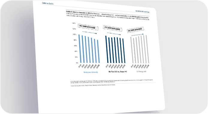 Goldman Sachs GS SUSTAIN: ESG of the Future Exhibit 29: Emissions intensities for Oil & Gas Producers — referred to Scope 1+2 — are forecast to decline at a 3% CAGR through the forecast period Oil & Gas Producers: profiles 2019-2025E for emissions intensities (calculated dividing Scope 1+2 emissions by energy sold), Scope 1+2 emissions and Energy sold from production and refining. Indexed to 2019 base. 140% 120% 100% 80% 60% 40% 20% 0% Emissions Intensity Mn Ton CO2-eq, Scope 1+2 GJ Energy sold As not all analysts model through 2025, 2024E and 2025E reflect the weighted average yoy change for companies where the covering analysts have submitted data. The same applies for 2019 and 2020 weighted average estimates. The Oil & Gas Producers sector is as de“ned based on GS SUSTAIN sector classi“cation. Source: Company data, FactSet, Thomson Reuters, Bloomberg, Goldman Sachs Global Investment Research