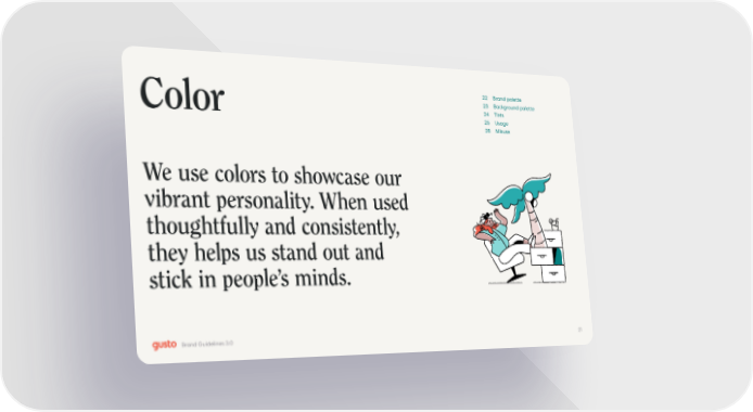 Color We use colors to showcase our vibrant personality. When used thoughtfully and consistently, they helps us stand out and stick in people’s minds. 22 Brand palette 23 Background palette 24 Tints 25 Usage 28 Misuse 21 Brand Guidelines 3.0
