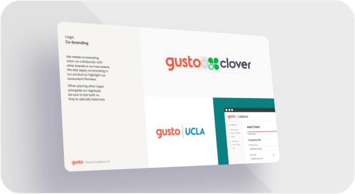 2.5 Logo Co-branding We create co-branding when we collaborate with other brands or co-host events. We also apply co-branding in our product to highlight our accountant Partners. When placing other logos alongside our logotype, be sure to size both so they’re optically balanced. 19 Brand Guidelines 3.0