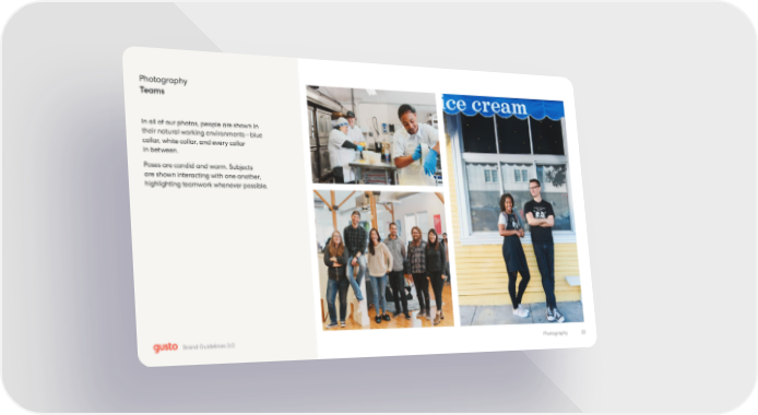 Photography Te am s In all of our photos, people are shown in their natural working environments—blue collar, white collar, and every collar in between. Poses are candid and warm. Subjects are shown interacting with one another, highlighting teamwork whenever possible. 32 Photography Brand Guidelines 3.0