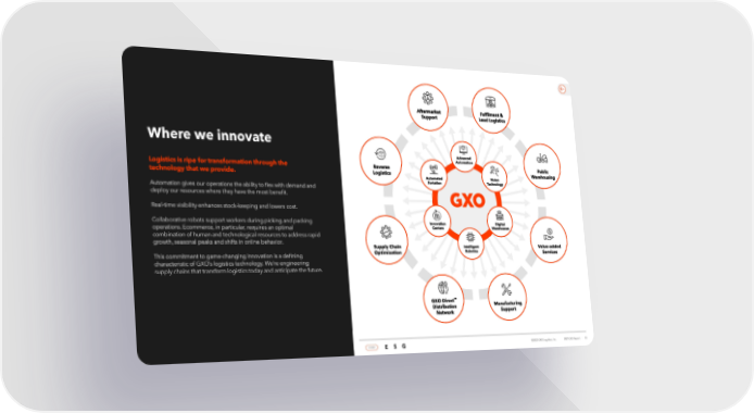 Where we innovate Logistics is ripe for transformation through the technology that we provide. Automation gives our operations the ability to flex with demand and deploy our resources where they have the most benefit. Real-time visibility enhances stock-keeping and lowers cost. Collaborative robots support workers during picking and packing operations. Ecommerce, in particular, requires an optimal combination of human and technological resources to address rapid growth, seasonal peaks and shifts in online behavior. This commitment to game-changing innovation is a defining characteristic of GXO’s logistics technology. We’re engineering supply chains that transform logistics today and anticipate the future. HOME E S G ©2022 GXO Logisitcs, Inc. 2021 ESG Report | 13