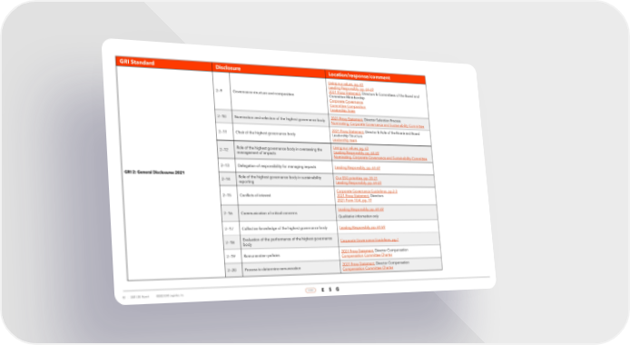 GRI Standard Disclosure Location/response/comment Living our values, pg. 63 Leading Responsibly, pp. 64-69 2—9 Governance structure and composition 2021 Proxy Statement, Directors & Committees of the Board and Committee Membership Corporate Governance Committee Composition Leadership Team 2—10 Nomination and selection of the highest governance body 2021 Proxy Statement, Director Selection Process Nominating, Corporate Governance and Sustainability Committee 2—11 Chair of the highest governance body 2021 Proxy Statement, Director & Role of the Board and Board Leadership Structure Leadership team 2—12 Role of the highest governance body in overseeing the Living our values, pg. 63 management of impacts Leading Responsibly, pp. 64-69 Nominating, Corporate Governance and Sustainability Committee 2—13 Delegation of responsibility for managing impacts Leading Responsibly, pp. 64-69 GRI 2: General Disclosures 2021 Role of the highest governance body in sustainability Our ESG priorities, pp. 20-21 2—14 reporting Leading Responsibly, pp. 64-69 Corporate Governance Guidelines, pp.2-3 2—15 Conflicts of interest 2021 Proxy Statement, Directors 2021 Form 10-K, pp. 19 2—16 Communication of critical concerns Leading Responsibly, pp. 64-69 Qualitative information only 2—17 Collective knowledge of the highest governance body Leading Responsibly, pp. 64-69 2—18 Evaluation of the performance of the highest governance Corporate Governance Guidelines, pg.7 body 2—19 Remuneration policies 2021 Proxy Statement, Director Compensation Compensation Committee Charter 2—20 Process to determine remuneration 2021 Proxy Statement, Director Compensation Compensation Committee Charter 82 | 2021 ESG Report ©2022 GXO Logisitcs, Inc. HOME E S G