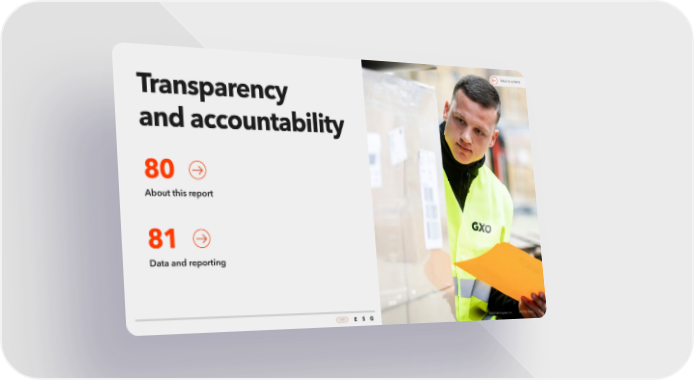Return to contents Transparency and accountability 80 About this report 81 Data and reporting 2021 ESG Report | 79 ©2022 GXO Logisitcs, Inc. 2021 ESG Report | 79 HOMEHOME EE SS GG ©2022 GXO Logisitcs, Inc.