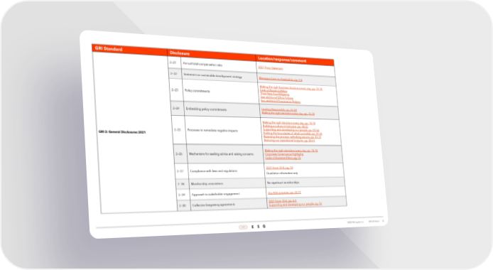 GRI Standard Disclosure Location/response/comment 2—21 Annual total compensation ratio 2021 Proxy Statement 2—22 Statement on sustainable development strategy Messages from our leadership, pp. 4-8 Making the right business decisions every day, pp. 70-78 2—23 Policy commitments Code of Business Ethics Third-Party Due Diligence See additional Ethics Policies See additional Governance Policies 2—24 Embedding policy commitments Leading Responsibly, pp. 64-69 Making the right decisions every day, pp. 70-78 Making the right decisions every day, pp. 70-78 Building a culture of inclusion, pp. 48-52 2—25 Processes to remediate negative impacts Supporting and developing our people, pp. 53-56 GRI 2: General Disclosures 2021 Pushing the boundaries of what’s possible, pp. 29-34 Reversing the process: rethinking returns, pp. 35-37 Reducing our operational footprint, pp. 38-41 Making the right decisions every day, pp. 70-78 2—26 Mechanisms for seeking advice and raising concerns Corporate Governance Highlights Code of Business Ethics, pg. 25 2—27 Compliance with laws and regulations 2021 Form 10-K, pg. 19 Qualitative information only 2—28 Membership associations No significant memberships 2—29 Approach to stakeholder engagement Our ESG priorities, pp. 20-21 2—30 Collective bargaining agreements 2021 Form 10-K, pp. 4-5 Supporting and developing our people, pg. 56 HOME E S G ©2022 GXO Logisitcs, Inc. 2021 ESG Report | 83