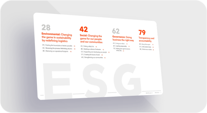 28 42 62 79 Environmental: Changing Social: Changing the Governance: Doing Transparency and the game in sustainability game for our people business the right way accountability by redefining logistics and our communities 63 | Living our values 80 | About this report 29 | Pushing the boundaries of what’s possible 43 | Putting safety first 64 | Leading responsibly 81 | GRI Content Index 35 | Reversing the process: Rethinking returns 48 | Building a culture of inclusion 70 | Making the right decisions 88 | Performance tables every day 38 | Reducing our operational footprint 53 | Supporting and developing our people 57 | Creating the future of work 60 | Strengthening our communities HOME E S G ©2022 GXO Logisitcs, Inc. 2021 ESG Report | 3
