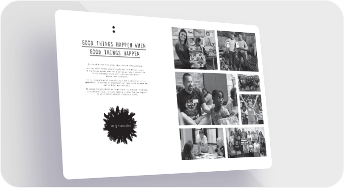 GOOD THINGS HAPPEN WHEN GOOD THINGS HAPPEN Our stated mission is to create ideas that are humanly relevant. And that spirit extends beyond the paid work we do for our clients. We are forever curious about how we can use our talents and our time to help the people around us in the communities where we ply our trade and beyond. For us, corporate social responsibility is not an obligation. It’s an opportunity. It enriches our understanding of human nature and makes the work we do far more meaningful. We created the G foundation on the principle that everyone – inner-city schoolchildren, local charities, aspiring athletes, families displaced by war or natural disaster – deserves a chance. the G foundation