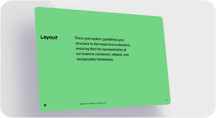 HANDSHAKE BRAND GUIDELINES 2021 44 Layout These grid system guidelines give structure to the visual brand elements ensuring that the representation of our brand is consistent, reliable, and recognizably Handshake.